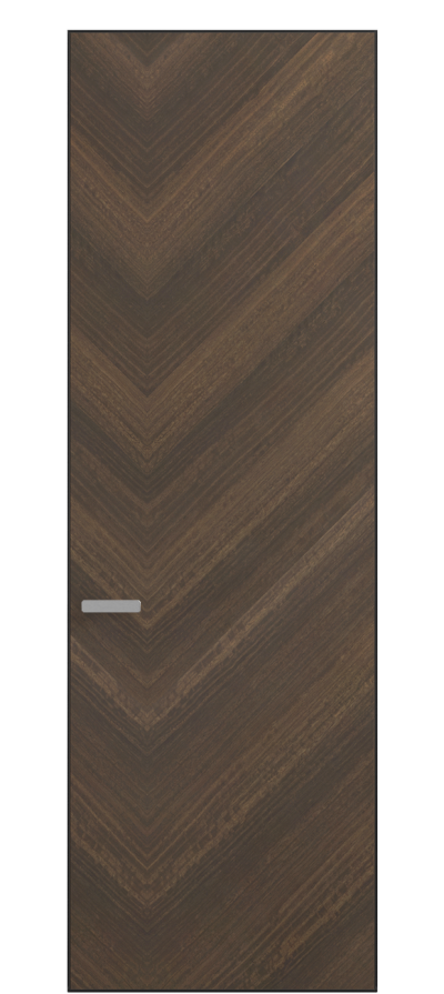 Полотно Rift в скрытом алюминиевом коробе становится полноценным элементом декора. В коллекции представлено 9 моделей дверей в высоте до 3 метров. Рисунок раскладки шпона варьируется от простого до сложного. «Рубашка» для каждого полотна подбирается вручную по цвету, текстуре и фактуре.