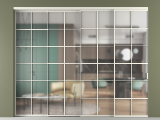 Перегородка Formato внутри проёма 4 створки с синхронным механизмом
